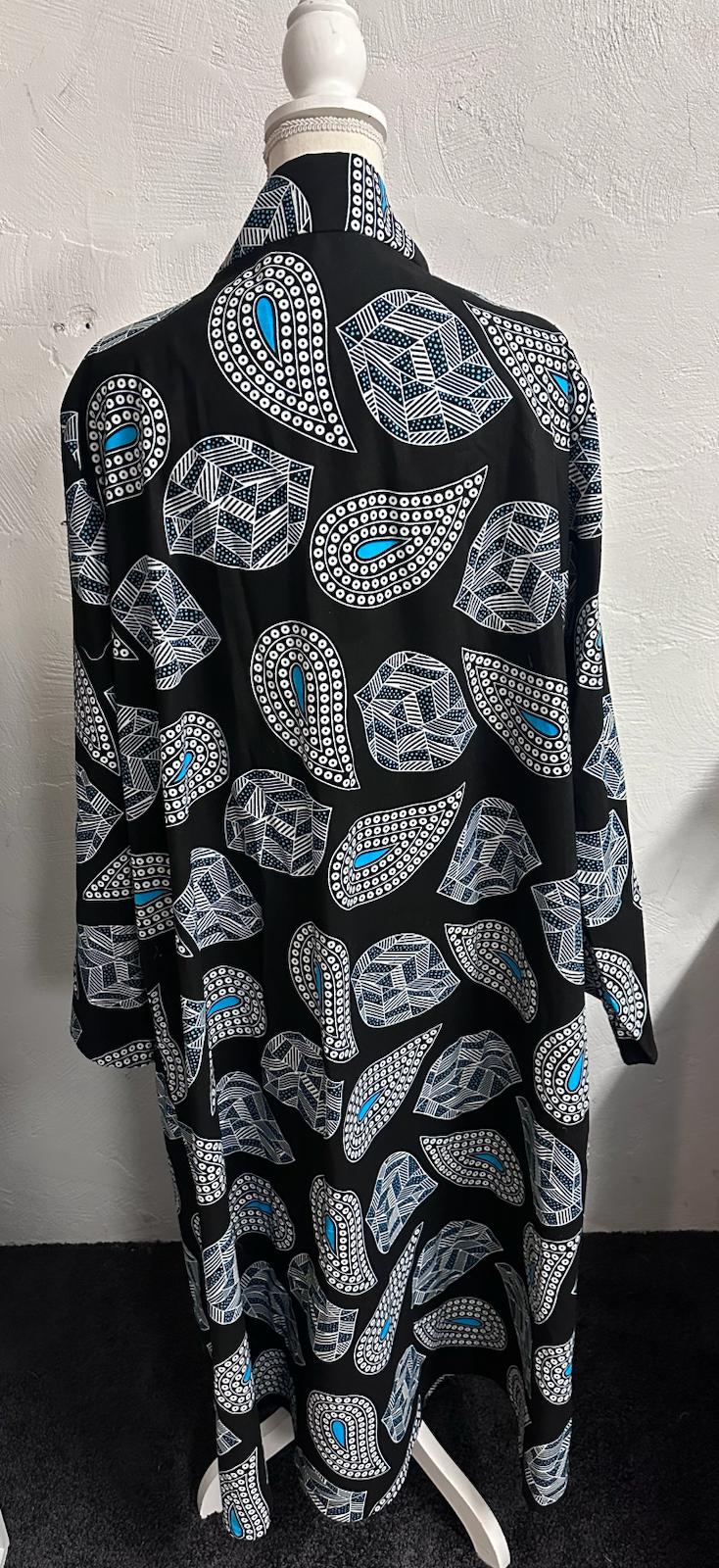 The kimono features a flowing silhouette that is appealing on all body types. Designed