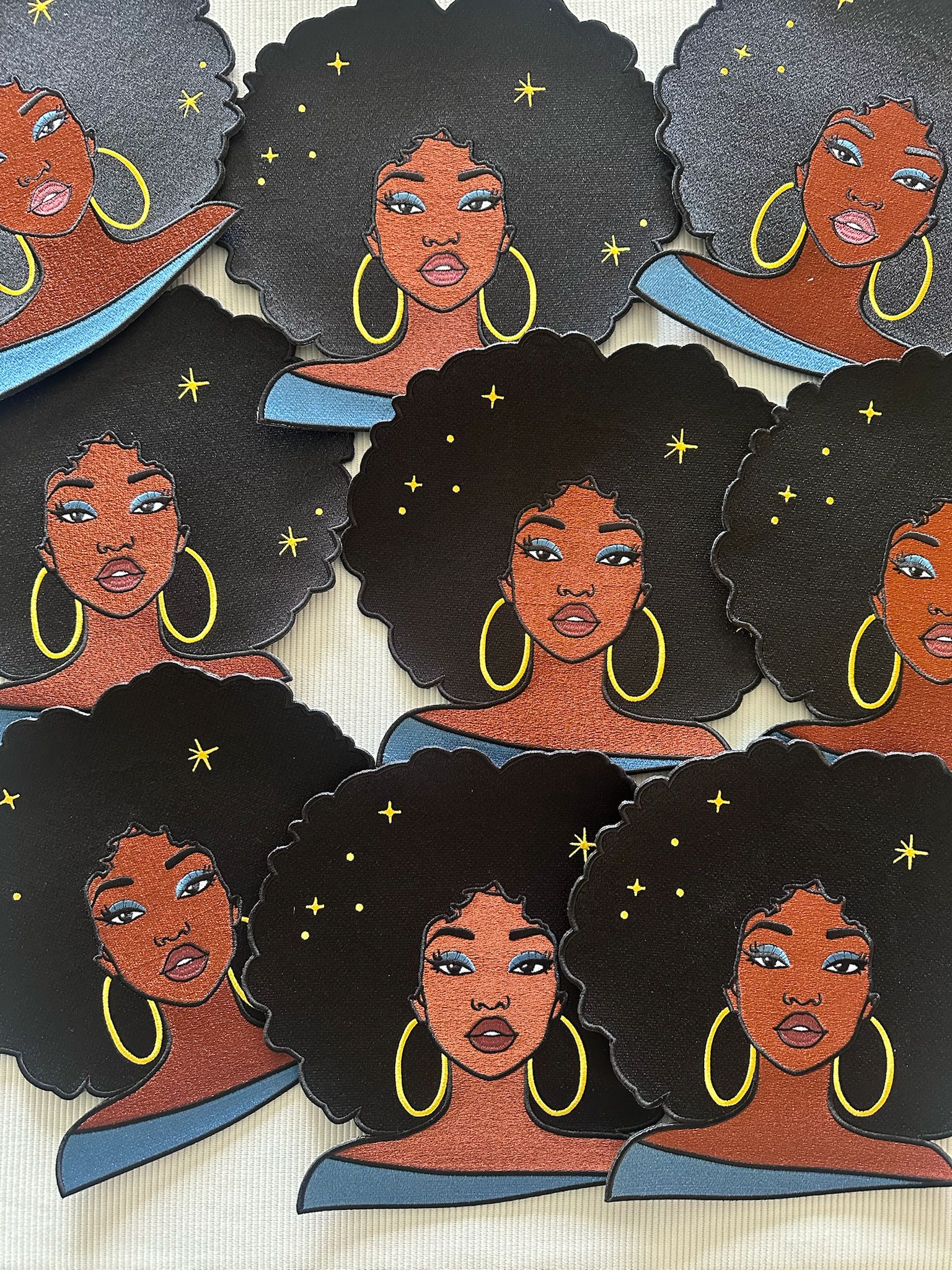 "Beautiful Blue" Let your afro flow, 10" iron on patch, adorn your jackets, tote bags and more.